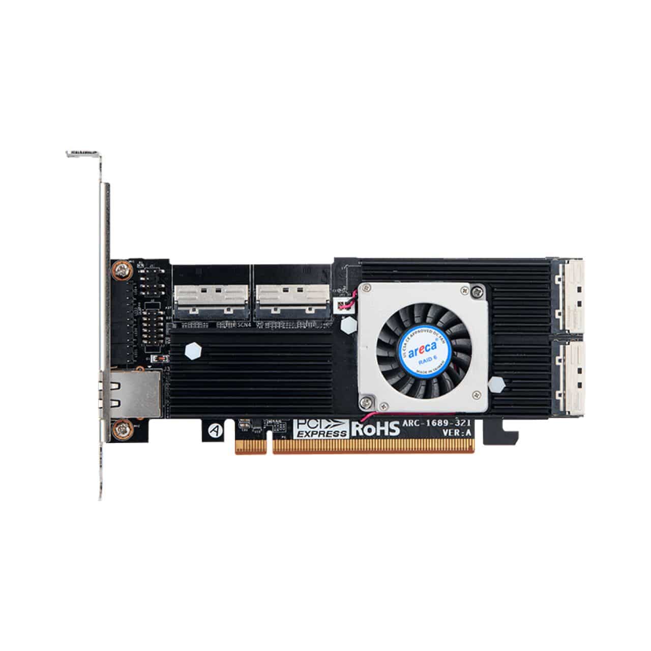 Areca ARC-1689-32I is a PCIe Gen 5.0 x16 NVMe hardware RAID adapter designed to build high bandwidth, low-latency, scalable storage using MCIO-connected NVMe SSDs. Built on a PCIe 5.0 switch and high-performance hardware RAID engine, it offloads RAID processing from the host to help preserve CPU and memory bandwidth for application workloads.